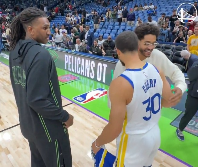 温情时刻:库里赛后拥抱普尔与卢姥爷,官方定调“永远的家人”;