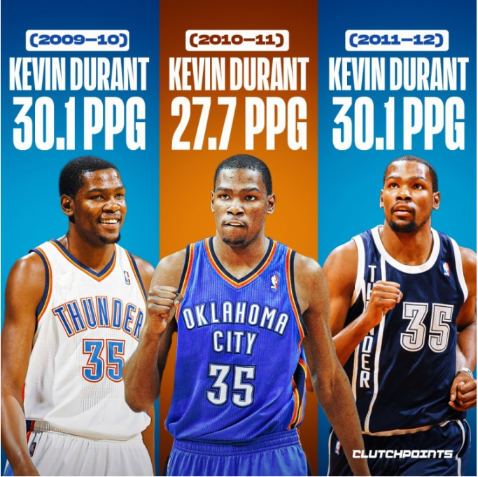 得分王变迁:09-10赛季至今,杜兰特、哈登、威少合计9次夺得分王;